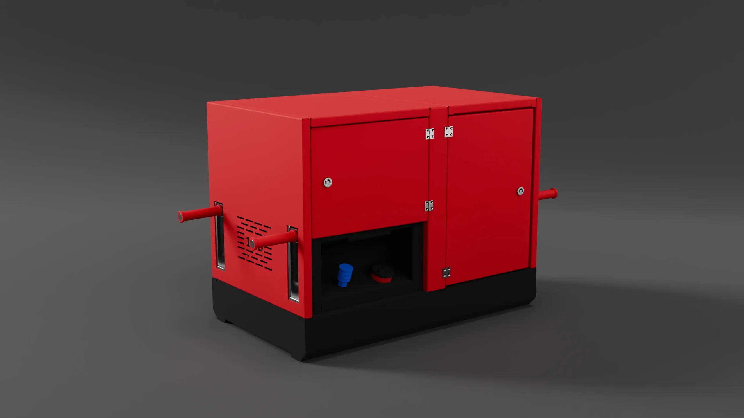 Equipped with several sturdy carrying handles, the generator can be transported safely and positioned easily. Features such as automatic grid switching and island parallel operation enable versatile applications in mobile operations. Optionally, it can be permanently mounted on a roll container, allowing for transport by a single operator and the transport of additional accessories. In addition to the standard diesel version, the portable generator is also available with a gasoline engine.